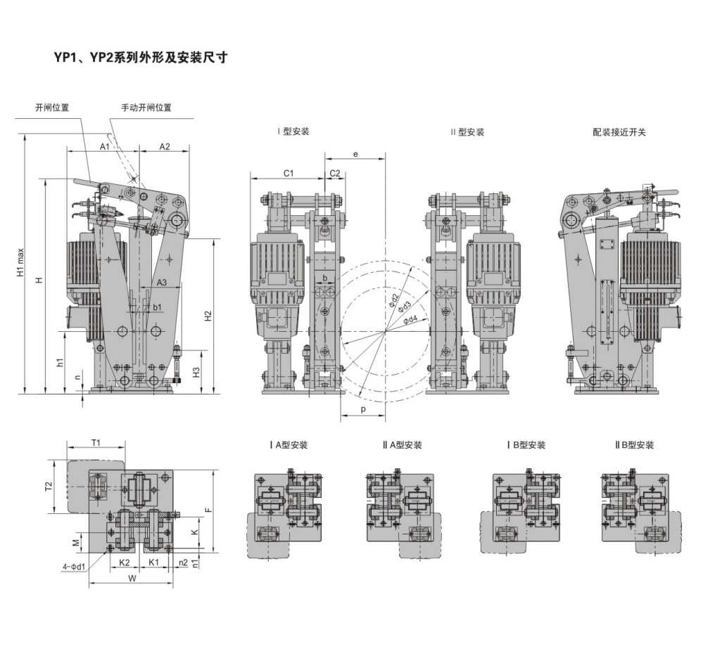 YP1.YP2.YP3系列電力液壓盤式制動(dòng)器是一種高性能、多功能的先進(jìn)產(chǎn)品。由于其具有瓦塊退距自動(dòng)均等,襯墊磨損自動(dòng)補(bǔ)償?shù)认冗M(jìn)功能,使用過程中維護(hù)非常便捷。通過增設(shè)各種限位開關(guān),可給主機(jī)PLC提供所需要的聯(lián)鎖保護(hù)信號(hào)。非常適合各種現(xiàn)代的大型裝卸機(jī)械、起重運(yùn)輸機(jī)械、冶金設(shè)備、礦山設(shè)備及工程機(jī)械中各種機(jī)構(gòu)的減速和維持(停車)制動(dòng)。